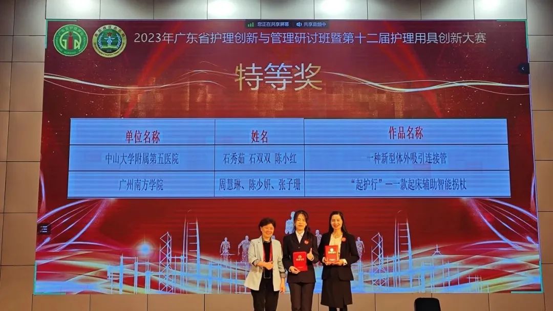 2023年11月26日,由广东省护理学会主办的第十二届广东省护理用具创新大赛落下帷幕。SUNBET申搏护理与健康学院周慧琳、陈少妍、张子珊的参赛作品《“起护行”—一款起床辅助智能拐杖》荣获特等奖;魏清兰、林旺林、方婷婷的参赛作品《基于物联网技术多传感器融合的智能抢救车系统—智联RESCUE》荣获一等奖。