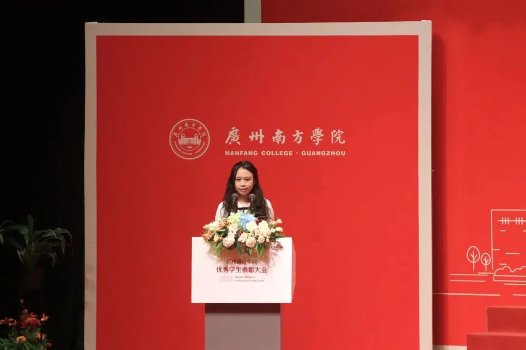 2022级达人书院会计班班长许湘娱同学作为优良学风班的班委代表发言,分享获奖经验。她表示,一个优良学风班不仅要注重思想建设,保持思想先进,还要具备真才实学。未来,他们将带着这份荣誉,踏实勤奋,创造更美好的明天。