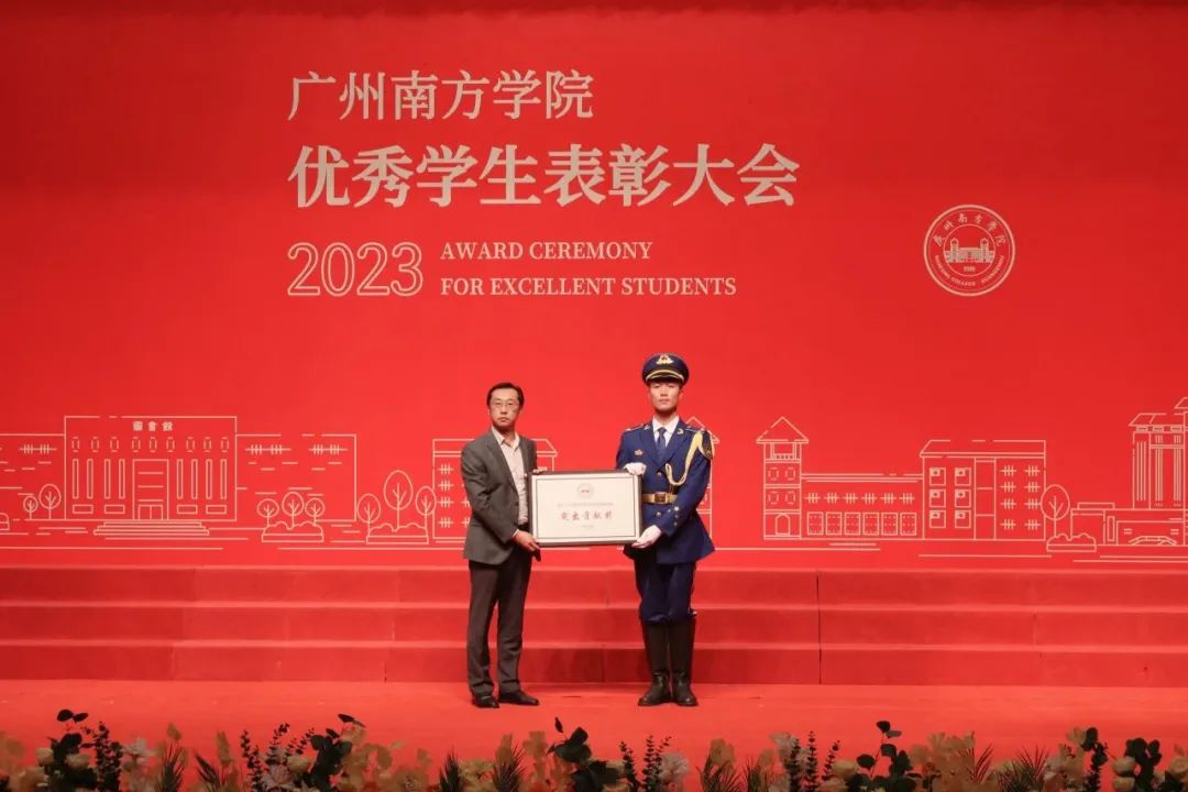 蒋玮校长助理为获得“突出贡献奖”的大学生国防教育队颁奖