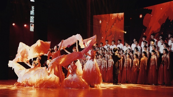 “奋楫笃行谱新篇 砥砺弥坚正芳华”文艺汇演,在雄壮有力的号角声中拉开帷幕,大型歌舞《可爱的中国》由校友黄舒琳领唱,合唱团、器乐团、舞蹈团集体亮相倾情演绎,让观众惊叹不已。