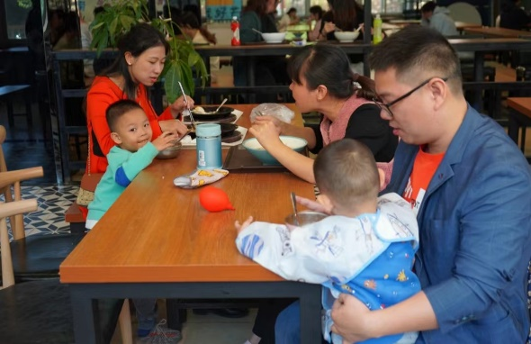 学校所有的饭堂都精心的做了准备,早早的挂起横幅迎接校友们回家。在校友们熟悉的各个饭堂里,与昔日的同窗们欢聚热聊回忆大学时光,或与家人们结伴而来共同品味学生时代熟悉的味道,欢乐的笑声此起彼伏,回荡在食堂中。