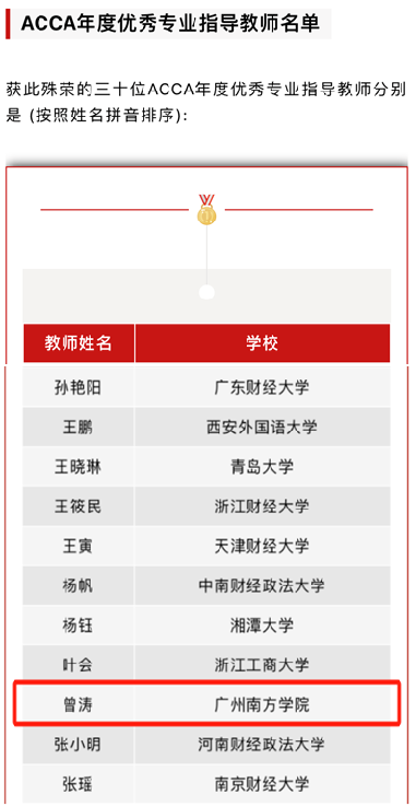 ACCA“优秀学生奖励项目”获奖名单