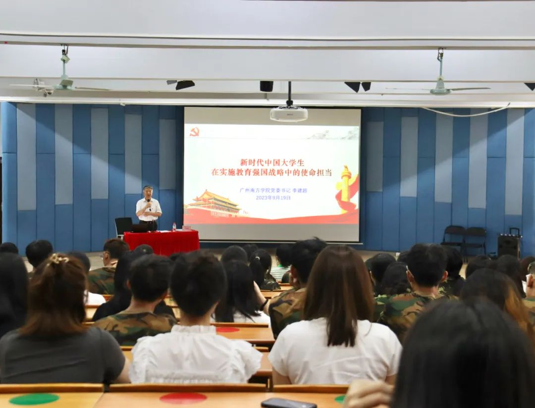 课上,李建超书记梳理了党的十八大以来党关于教育强国的重要论述,高度凝练了新时代加快建设教育强国的重要战略意义和坚实基础,明确指出建设教育强国是全党全社会共同的责任,并对作为新时代大学生的南院学子担当建设教育强国时代重任寄予殷切期望,引导学生正确认识时代责任和历史使命、正确认识远大抱负和脚踏实地,激励学生把人生理想融入国家和民族事业中,鼓舞学生勇担时代重任、勇做走在时代前列的奋进者、开拓者。