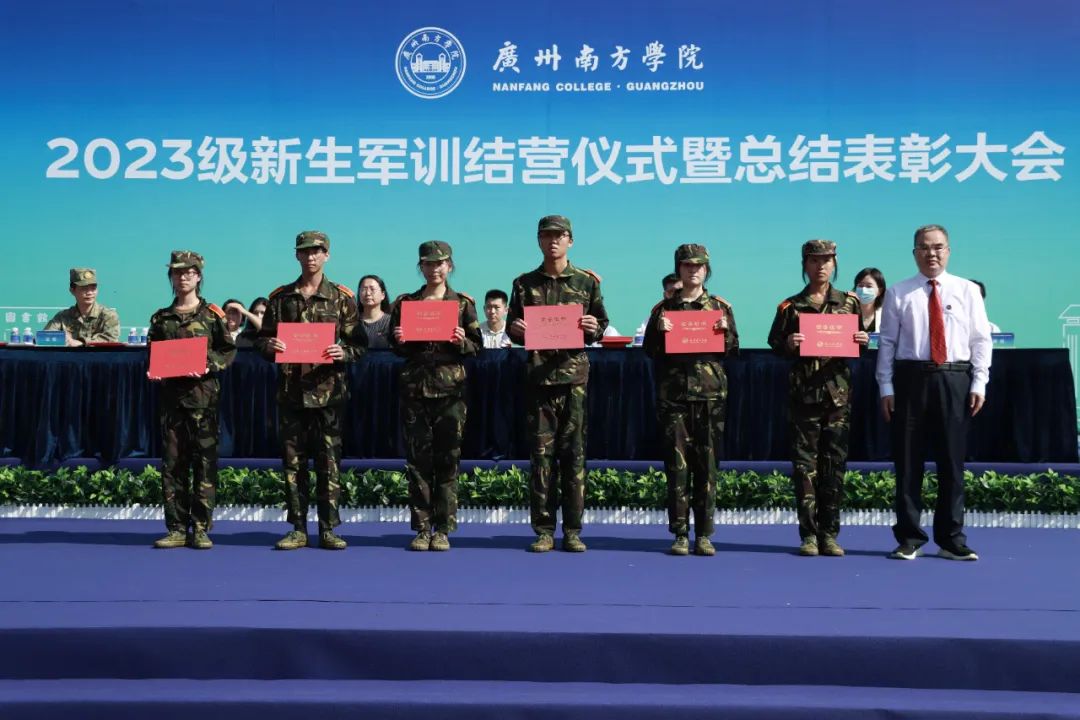 汇报表演后,学校党委副书记、副校长植秀聪宣读军训表彰决定。与会领导为2023级学生军训“先进单位”、“优秀方阵”、“优秀教官”、“优秀教导员”、“军训之星”颁奖。