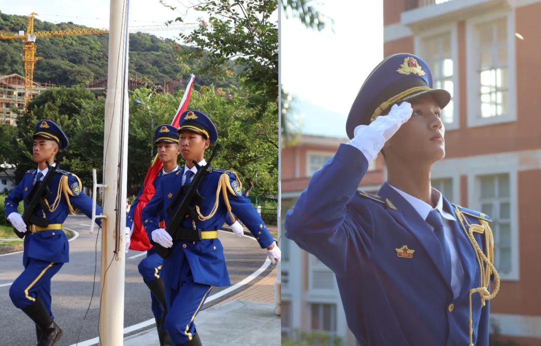 上午8时许,升旗仪式正式开始。学校国教队国旗班的成员迈着铿锵整齐的步伐,庄严地护卫着鲜艳的五星红旗走向升旗台。国歌奏响,五星红旗冉冉升起,全体人员面向国旗行注目礼、高唱国歌。