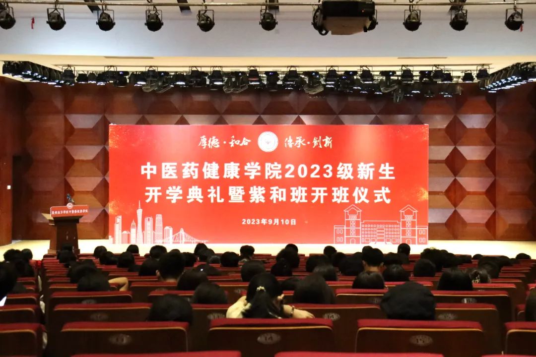 9月10日下午,中医药健康学院2023级新生开学典礼暨首届紫和班开班仪式在学校音乐楼音乐厅举行。148名新生怀揣着满腔的喜悦与梦想相聚于此,在全国名老中医邱健行教授、广州医科大学原校长王新华教授、广东新南方集团董事长朱拉伊先生、梅州紫合医院院长樊粤光教授等嘉宾的见证下,以新身份开启人生新征程。校长喻世友教授,学校党委副书记、副校长植秀聪,副校长兼财务总监王兰,教务处处长钟肖英,产学研合作处处长叶娜,中医药健康学院全体师生及部分新生家长出席典礼。