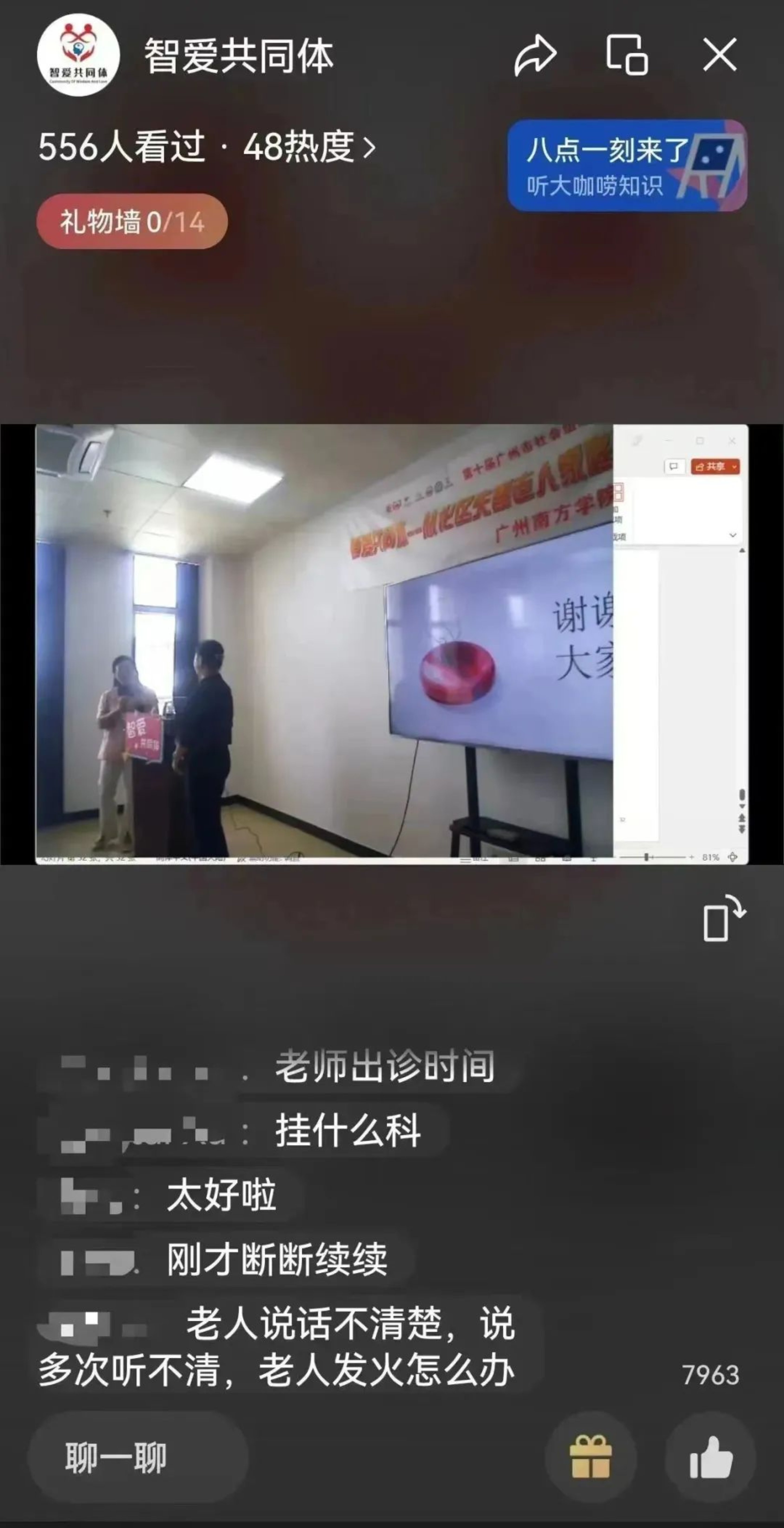 在“干货”满满的课程之后,现场气氛活跃、互动频繁,沈曼璇老师分别就线下、线上参与者的疑问进行解答,帮助大家更好地理解失智老人、掌握照护技巧。