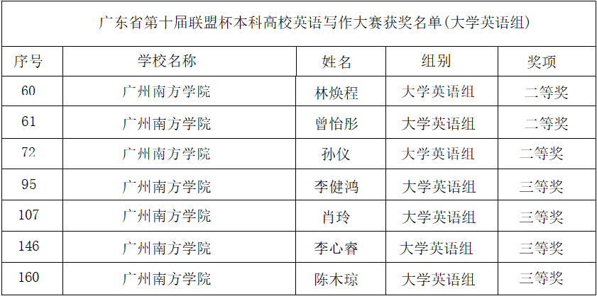 申搏学子在广东省第十届“联盟杯”本科高校英语写作大赛中取得佳绩