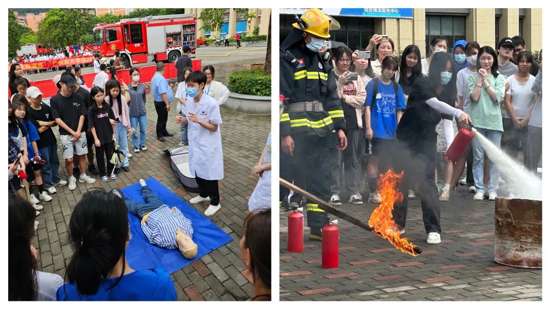 此次演练由从化区消防救援大队、学校保卫处、学生处、总务处、医务室、护理与健康学院及物业公司共同组织。