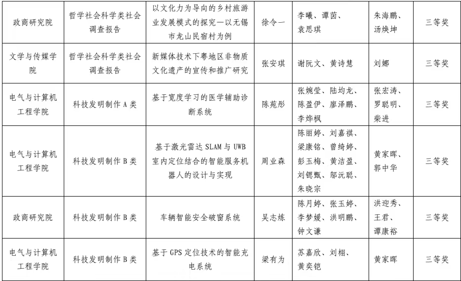 第十七届“挑战杯”广东大学生课外学术科技作品竞赛获奖项目