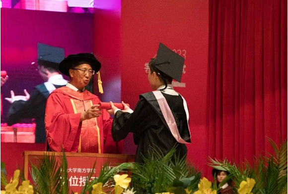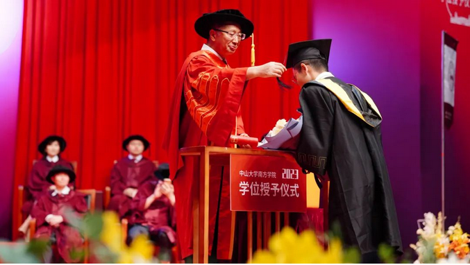 8点30分,学位授予仪式在庄严的国歌声和孙中山先生的毕业训词中正式拉开帷幕。