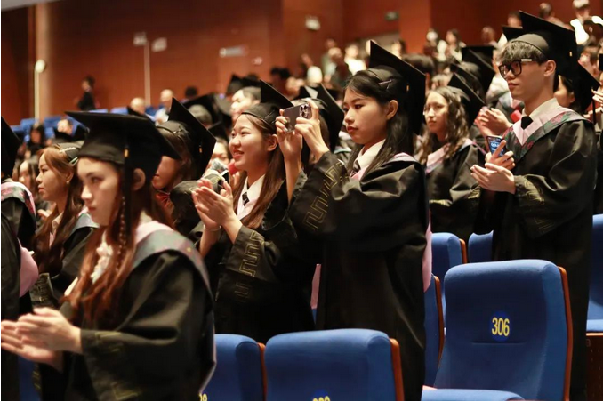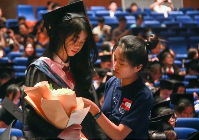 喻世友校长依次为2023届毕业生拨穗正冠、授予学位。简单的动作,承载着殷切希望和美好祝愿。