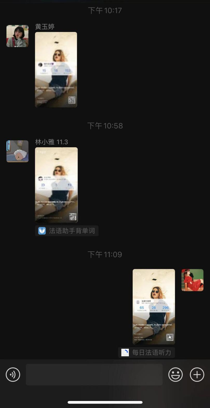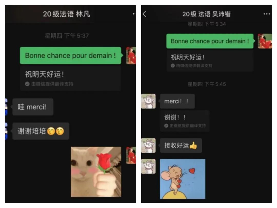 作为外语学习者,牛文培带领同学们每日进行外语学习打卡,并每天率先发到学习群中。在一段时间后,牛文培惊喜地发现,同学们也都有条不紊地坚持每日学习打卡。学生常常也向牛文培说:“老师都这么努力,我有什么理由去‘摆烂’呢?”在牛文培的带动下,班里出现了一个又一个大家口中说的榜样。如在一次学习分享活动中,冯诗婷同学得知曾晓俏同学每天坚持阅读一小时后,从此以她为榜样,每天坚持进行法语阅读,从一开始的成绩平平到后来成绩的突飞猛进,成为了“一匹黑马”。