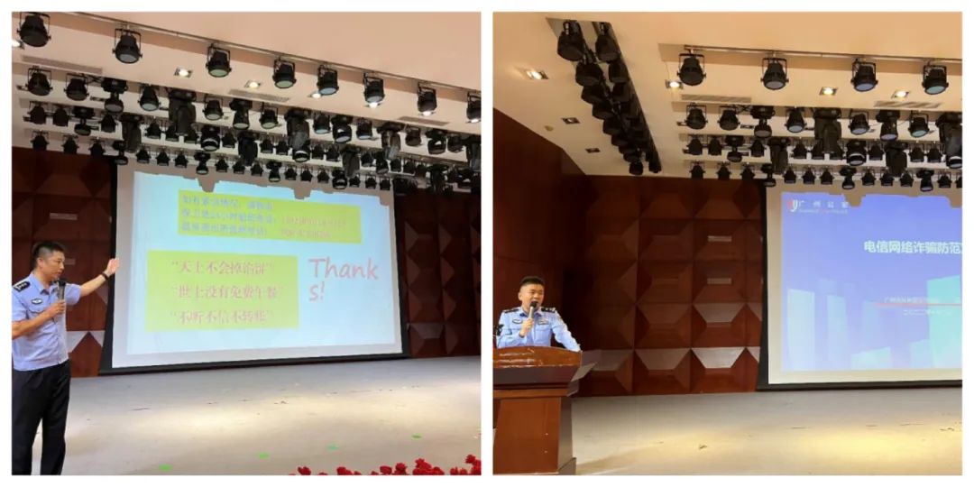 温泉派出所所长莫玉军、刑警大队副队长马士博分别从不同层面介绍了目前市级、区级、驻从高校诈骗案发情况,并介绍了下一步防范电信网络诈骗的工作措施。重点包括加强对教职工、志愿宣讲队伍的培训,帮助教职工、志愿宣讲队员了解清楚诈骗的手段,通过层层压实责任、层层落实责任,推动“无诈”校园建设。