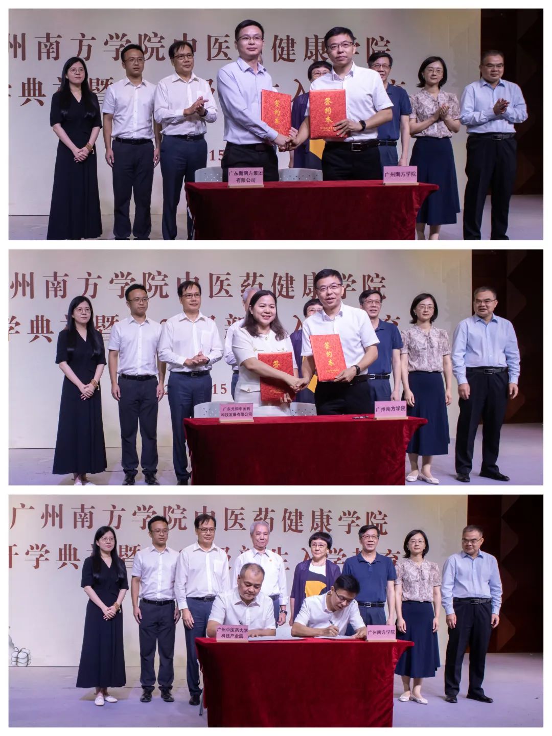 开学典礼上,申搏与广东新南方集团、广东元知中医药科技发展有限公司、广州中医药大学科技产业园举行了签约仪式,将在人才培养、师资建设、科学研究、实践平台、招生宣传、学生就业、奖助学金、特色班级建设等领域达成更广泛的合作。