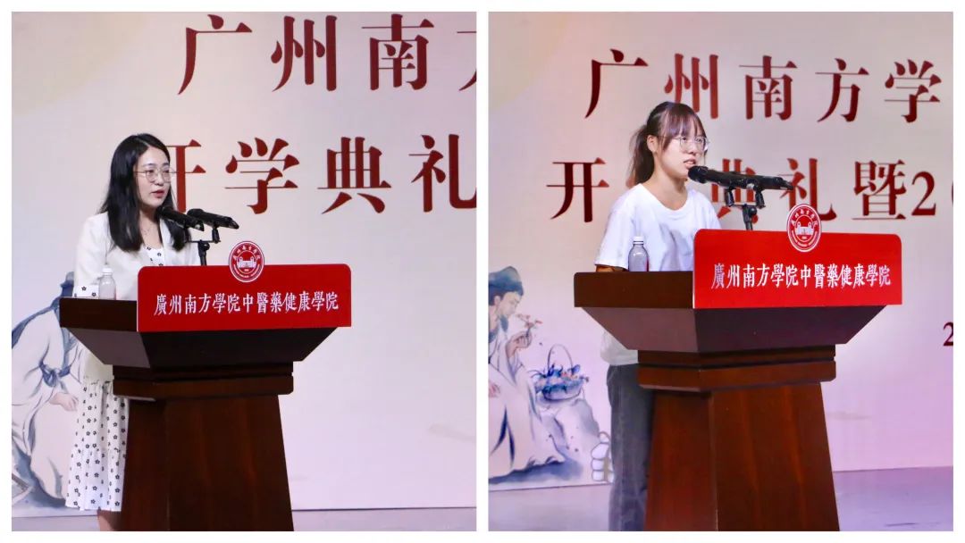 王剑屏同学作为2022级本科新生代表发言。她认为,作为一名新时代青年,有责任和义务背负人类健康发展的使命继续前进,将中医药这一瑰宝发扬光大。