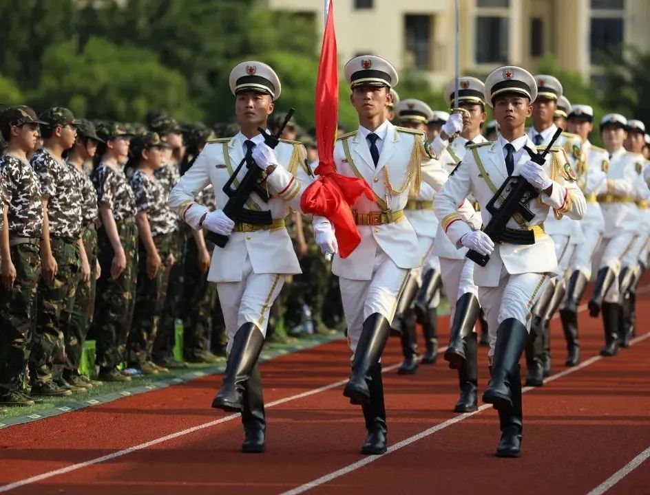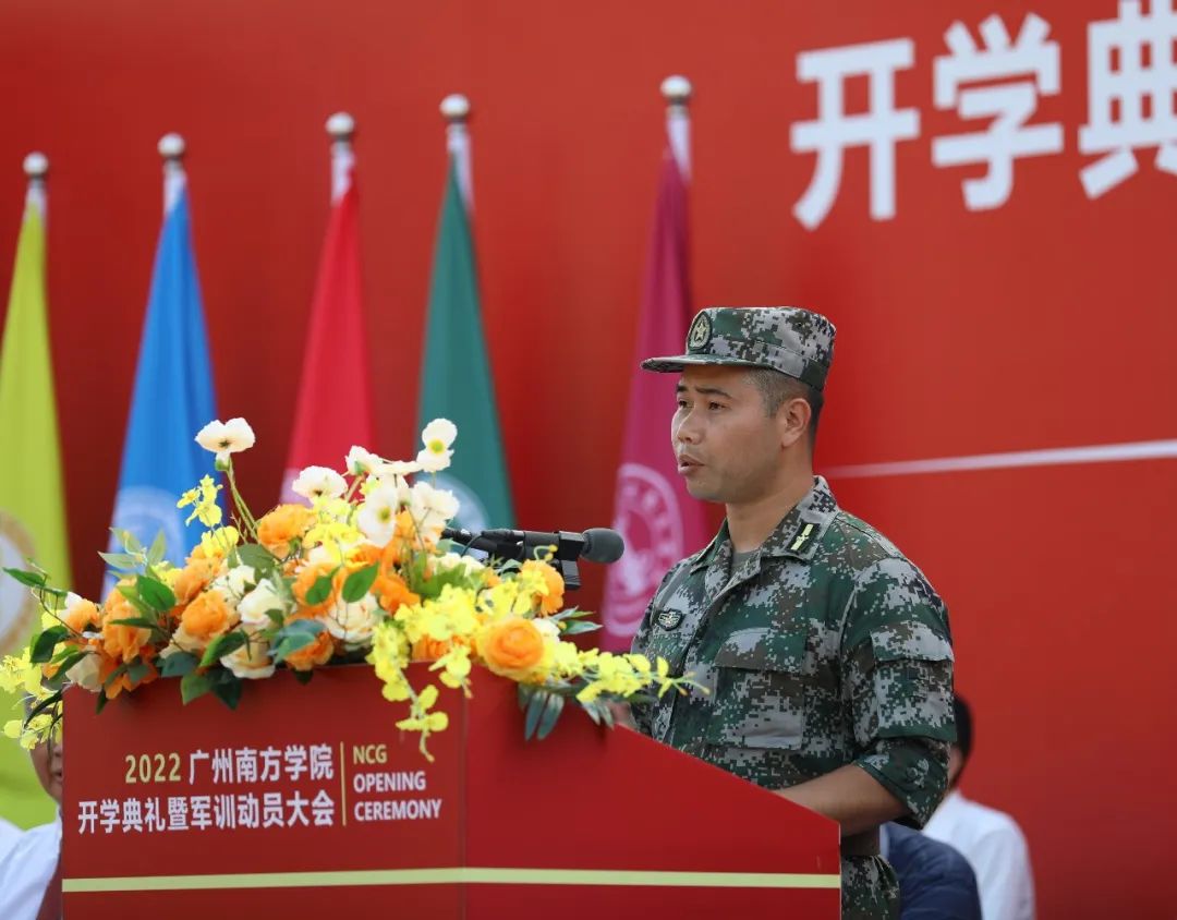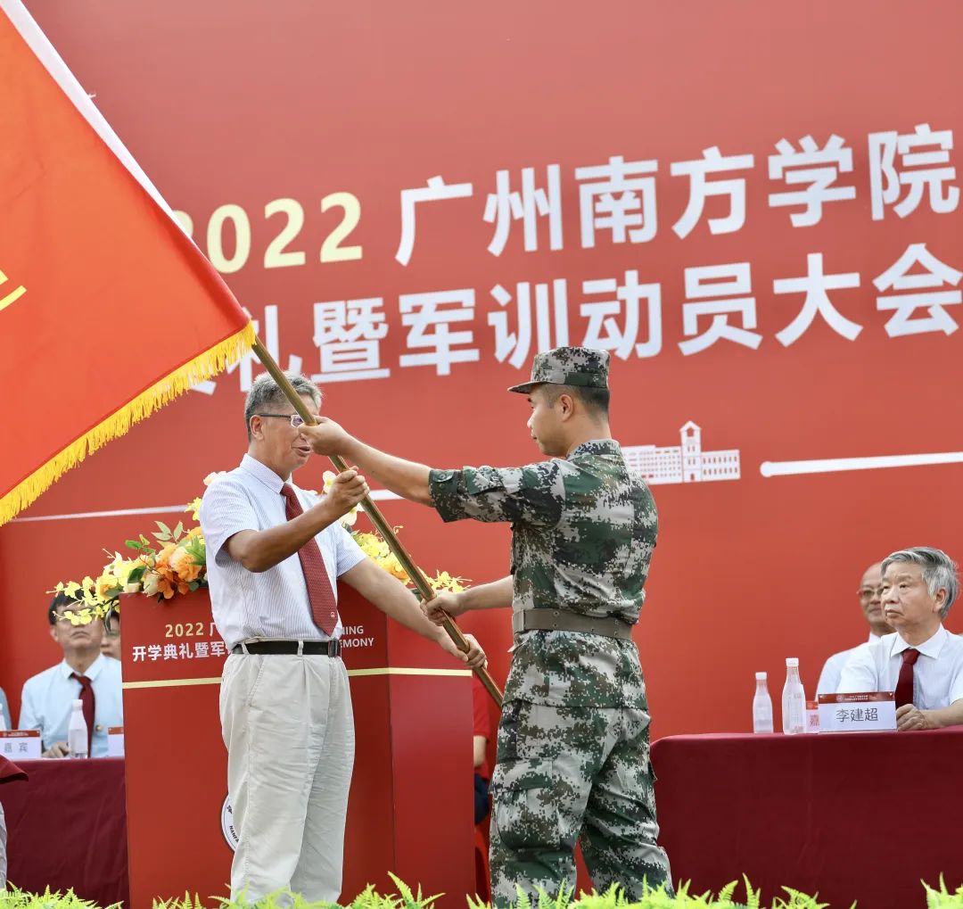 随后,喻世友校长为2022级新生军训团授旗。