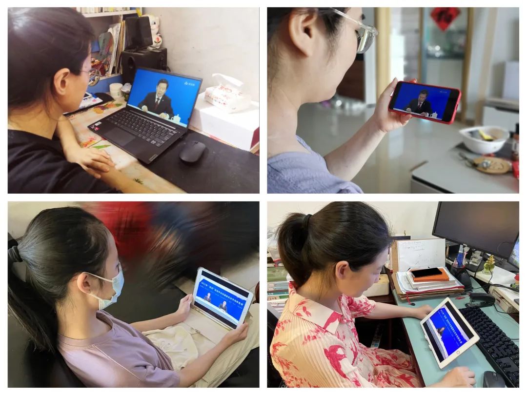 申搏师生自行通过电脑、手机认真观看聆听报告会