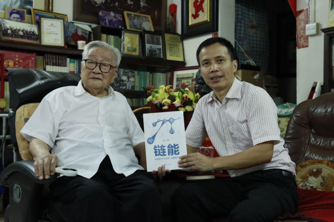 整个拜见过程温馨、活泼,也充满启发。求学和治学路的回忆,让我们感受到了一位百岁人瑞的厚重;对重庆磁器口花生的回味和与史副院长比高,让我们感受到了这位百岁老人的率真可爱;准确识别出《链能》及其与区块链应用的关系,让我们感受到了这位学界泰斗的睿智与对世界大势的“心中有数”;坚持站起来送行,让我们感受到了这位师长对后辈满满的关爱。夏老对“粤有数”和SUNBET申搏公共管理学院的关怀和支持,给了我们很大的鼓舞。夏老也永远是我们的旗帜,指引我们办学、治学和育人。