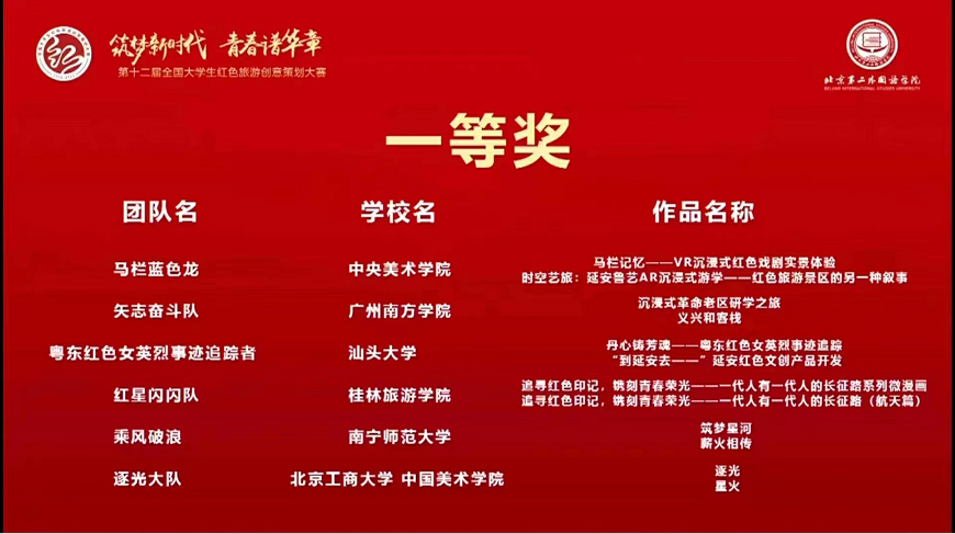 全国大学生红色旅游创意策划大赛由文化和旅游部资源开发司、陕西省文化和旅游厅、延安市人民政府、北京第二外国语学院联合组办,是目前国内规模最大的红色旅游专业赛事。此次比赛吸引了南开大学、中国传媒大学、东南大学、北京林业大学、大连理工大学、重庆大学、中央美术学院等943所高校参与,共计7085支队伍,涵盖3.8万名师生,提交作品4613项,赛事规模为历届之最。