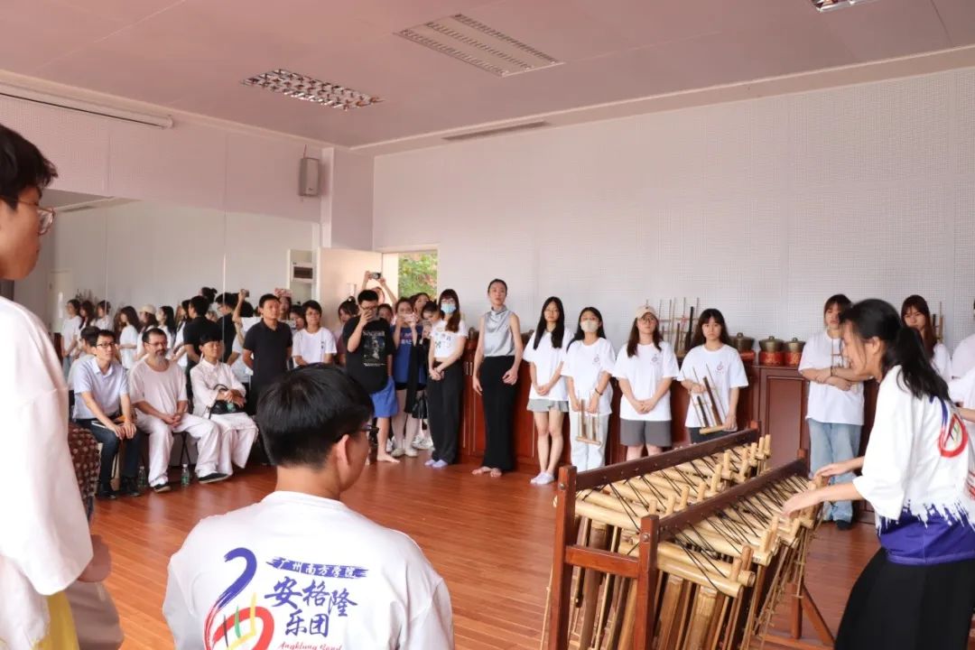 安格隆(Angklung)是源自印尼的一种竹乐器,简称“摇竹”,2010年被列为人类非物质文化遗产。音乐系自2017年开始在“公共选修课”和“专业选修课”开设安格隆特色课程,开展了“校园跨文化美育”和“社会跨文化互融性美育”等大型活动,包括“校园快闪、校园开放性教学、校园互动音乐会”以及“走进学校”“走进企业”“走进社区”等不同形式活动。对彰显我国当代具有中华美育精神的世界多元文化美育的格局与风范,践行申搏的应用型人才培养方针,促进申搏的社会和国际影响力,以及音乐系的学科特色建设做出了重要贡献。