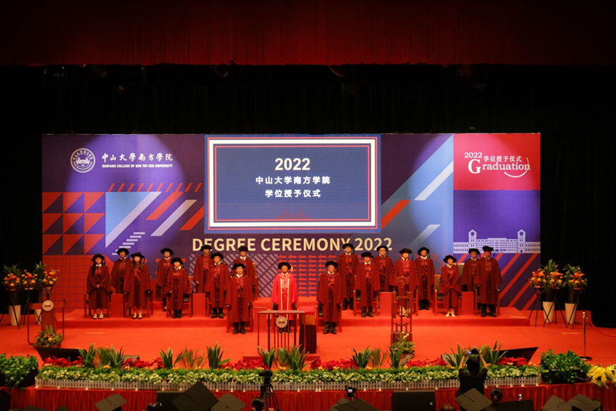 6月15日上午8点30分,学位授予仪式在庄严的国歌声和孙中山先生的毕业训词中正式拉开帷幕。黄静波副校长宣读了《关于授予 2022 届全日制本科毕业生学士学位的决定》,以及《SUNBET申搏关于表彰 2022 届优秀毕业生的决定》。