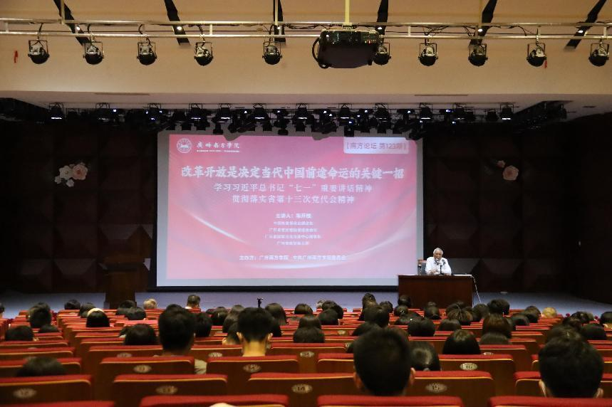 此次南方论坛在省第十三次党代会召开后的当下向广大师生宣讲改革开放的伟大历史意义和现实意义,有利于南院师生深入学习习近平总书记“七一”重要讲话精神,引导广大师生把思想和行动统一到省第十三次党代会精神上来,对党史、新中国史、改革开放史、社会主义发展史有更加深刻的理解,自觉将党史和改革开放史结合起来,并融入到学习工作当中,推动申搏党史学习教育向纵深发展,助力学校高质量发展。