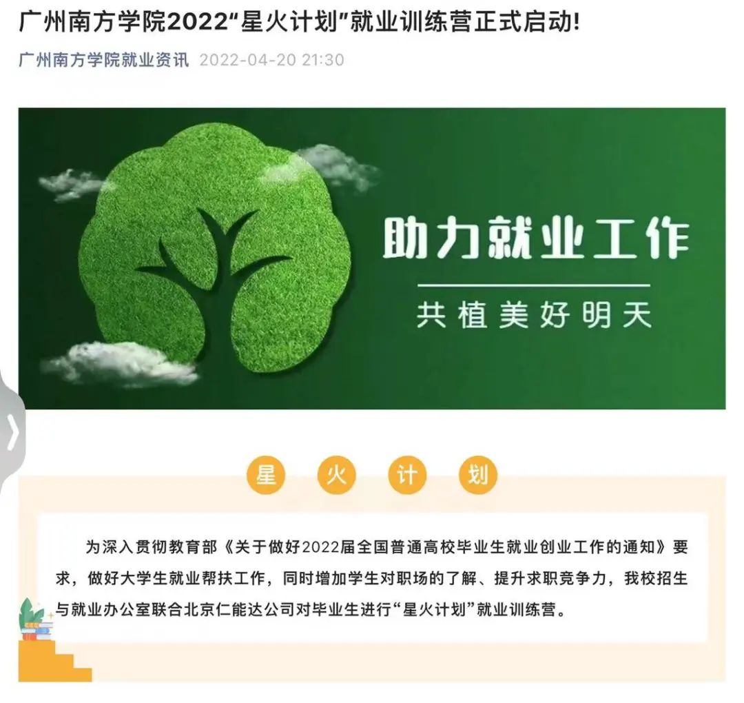 二、 关注重点群体就业,开展SUNBET申搏2022“星火计划”就业训练营。
