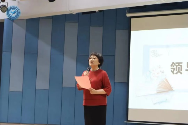 朗诵结束后,唐燕常务副校长、党委副书记为比赛致辞。她跟大家分享了面对当今疫情所引发的思考,还结合自身经历讲述了读书的意义。比赛不是为了获得名次,而是为了在分享的过程中与大家共同体会书籍中的知识以及受到的启迪。每一个人都需要读多种类型的书,扩大自己的阅读面。接着,她还说道,希望同学们在分享的过程中注重阅读方法的培养,同时能够发现彼此的优点,取长补短,弥补自己在阅读过程中的不足。