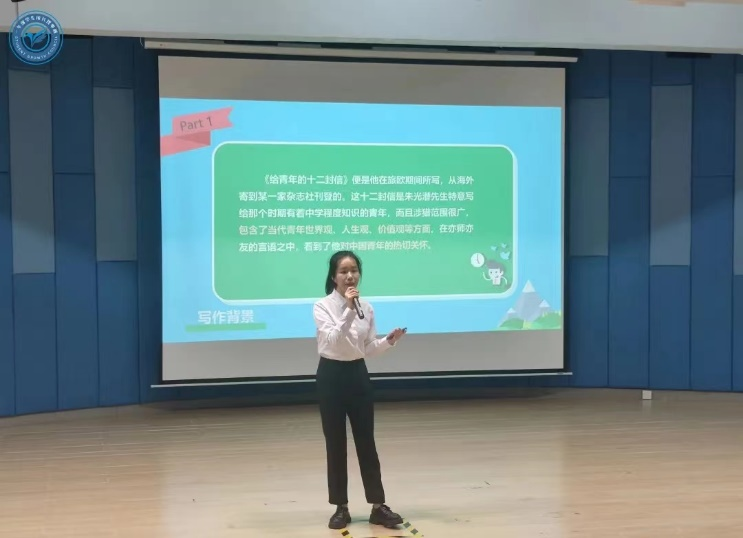 来自会计学院的梁颖姿同学给我们带来了《给青年的十二封信》,分享了朱光潜先生在书中给青年们传达的价值观、世界观和人生观。