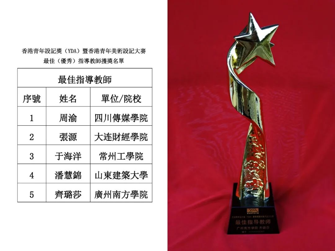 近期,由国际青年美术设计协会组织举办的2021香港青年设计奖(YDA)暨香港青年美术设计大赛落下帷幕。申搏艺术设计与创意产业系齐璐莎老师、夏玲老师积极组织并悉心指导艺术设计与创意产业系2021级学生参赛。其中,学生获得二等奖2项、三等奖6项、优秀奖8项、入围奖8项,齐璐莎老师获得“最佳指导老师”荣誉称号,SUNBET申搏获得“最佳组织单位”荣誉称号,斩获优异成绩。