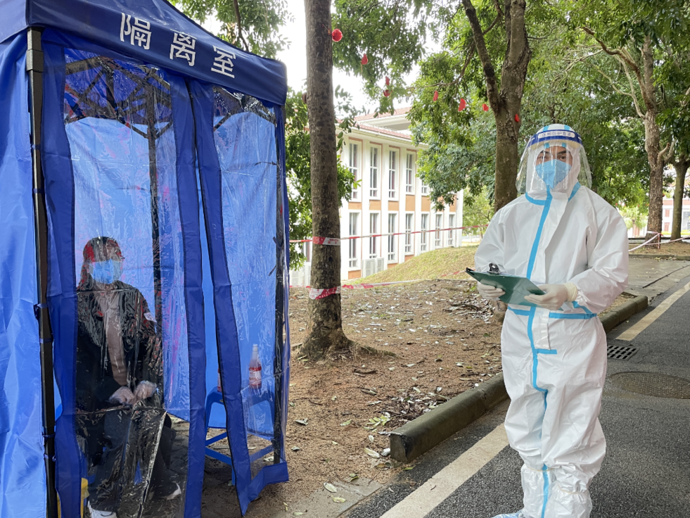 此次演练采取模拟疫情现场方式,以一名学生在核酸检测中初筛结果阳性为背景,校医接到社区医院的通知后,立即向校领导汇报情况,学校第一时间电话报告省教育厅及区教育局,并迅速启动学校新冠疫情防空处置应急预案。学校办公室、学生处、教务处、保卫处、总务处、人事处、医务室等单位闻令而动,根据各自职责和分工,对疫情积极响应,密切配合,形成防控合力。查明、定位学生上课区域、向上级部门报送学校疫情情况、配合疫情疾控中心开展流行病学调查、对管控人员进行转运隔离、开展大规模核酸检测、对校园进行封闭封控管理……各部门协调联动,有条不紊地开展各项工作,有效提升了团结协作、应急处置、舆情管理等方面的能力。