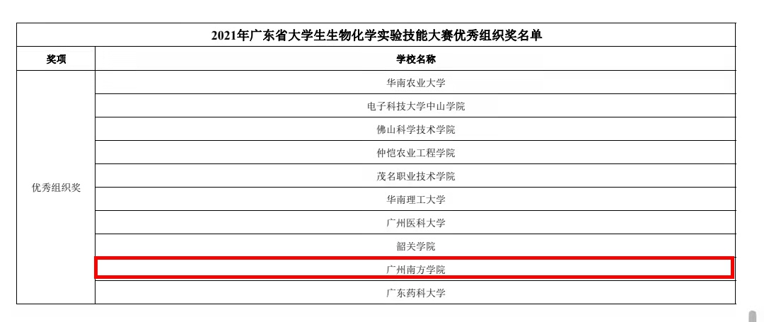 2021年11月14日,由广东省教育厅主办、华南农业大学承办广东大学生生物化学实验技能大赛上,申搏云康医学与健康学院陈楚言老师率领医学检验技术专业18级叶双庆、张丽欢、何娉婷三人,