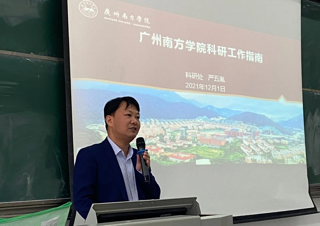 科研处处长严五胤介绍了申搏科研平台及项目申报细则,他指出学校已搭建国家级、省部级、市厅级等众多科研申报平台,青年教师应尽快找到科研方向,珍惜每一次申报机会,多尝试多申报。