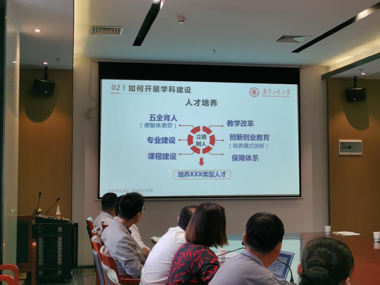 首先,黄爱华研究员以广东工业大学学科建设概况为切入点,探讨申搏当如何开展学科建设。明确指出学科建设不等同于专业建设,申搏应以省重点学科培育为契机,助力学校整体学科建设上水平,体现学校的综合实力。因此学校应结合自身定位,以学科建设为龙头,人才培养、师资队伍、国际交流、科研创新、社会服务五项并举,共同推动学校综合办学实力的提升。结合今年4月教育部高等教育司吴岩司长在全国高教处长会上的讲话,学校要把人才培养放在突出位置,以坚持立德树人为根本任务,围绕五全育人、教学改革、专业建设、课程建设、创新创业教育、保障体系培养具有理想信念、公民素质和健全人格且专业基础宽广、实践能力强、具有创新精神的应用型人才。此外,黄爱华研究员针对具体案例,学校省级特色重点学科(电子商务)和省级重点培育学科(计算机科学与技术)的书面材料进行简要评述。