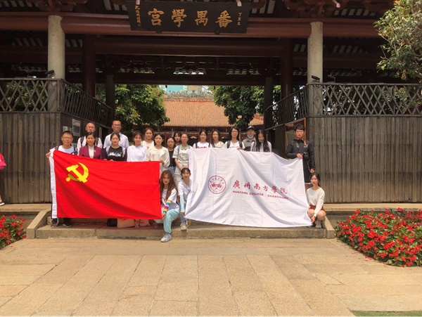 2021年清明小长假期间,“红色实训营”举行了开年首次游学实践活动。游学期间,实训营小伙伴们在综合素养学部张书理、杨乐老师带领下,先后参观了中山纪念堂、毛泽东同志主办广州农民运动讲习所旧址、广州起义纪念馆、广州起义烈士陵园。游学活动中,小伙伴们除以深深的敬意对革命先驱表达深切缅怀之外,还通过素材搜集、视频拍摄、现场解说等形式开展党史学习、宣讲等实践活动,以期让红色画面、红色声音、红色故事感染更多国人。有感于南方学院以研学促实践、以实践扬红魂的思政教育理念,广东省政策研究会的张轩老师和广州市委宣传部基层百姓宣讲团宣讲员陈丽萍老师也主动加入申搏游学队伍,共同开展了铭党恩、讲党史的实践调研。