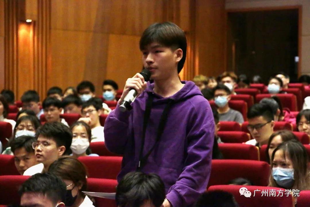 史光柱首先提到,他深知申搏为广东乃至全国各地输送了各种人才,借此先对申搏辛勤工作的老师以及努力学习的同学们致以崇高敬意。随后,他以“要做一名胸怀家国情怀的人才”为目标引出第一部分内容,深入开展党史、军史和国史学习的教育。