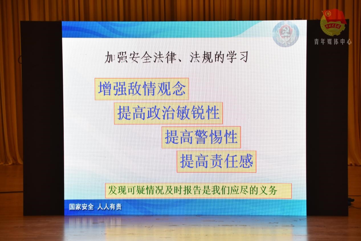 仲教授通过国内外多项有关国家安全的客观案例帮助在座师生认识当前国际安全形势严峻,在引述相关案例并分析其给我们可以带来的经验与教训的同时,也结合自身见闻进行深入地阐释和解读国家安全与公民紧密的关系,让在场师生真切认识到国家安全并不是高高在上的政治名词,而是与我们每个人工作、学习与生活紧密联系在一起的,维护国家安全是我们每名公民义不容辞的责任与义务,增强维护国家安全的自觉性、责任感、使命感。