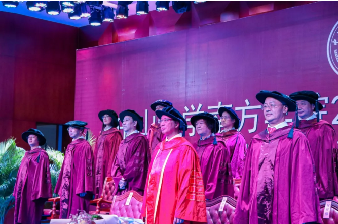 随后,黄静波副校长宣读了《关于授予姚琦等4052名2018届本科毕业生学士学位的决定》以及《关于表彰2018届荣誉毕业生的决定》:经学校学位评定委员会审核通过,决定授予姚琦等4052名2018届本科毕业生学士学位,决定授予商学院陈裕芝等47名同学“中山大学南方学院2018届荣誉毕业生”荣誉称号。黄静波副校长也鼓励荣誉毕业生应珍惜荣誉、勇于创新、再创佳绩,希望其他毕业生以荣誉毕业生为榜样,苦苦学习、积极进取,努力成长为综合素质高、实践能力强、具有创新精神的高级人才。